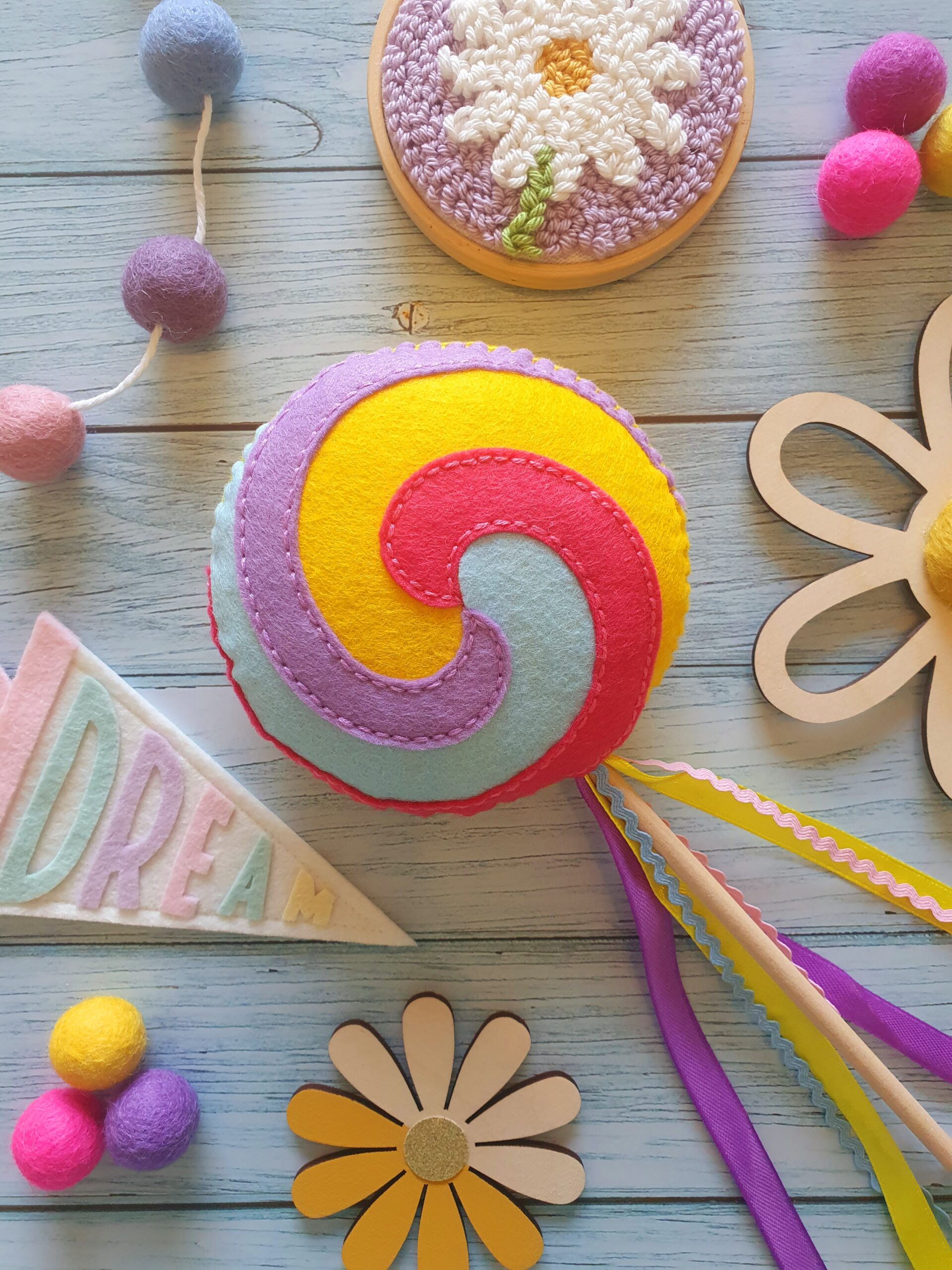 These scrumptious looking lollipop wands would make a great gift for a little one. They are so fun and all lovingly designed and handstitched by myself.
