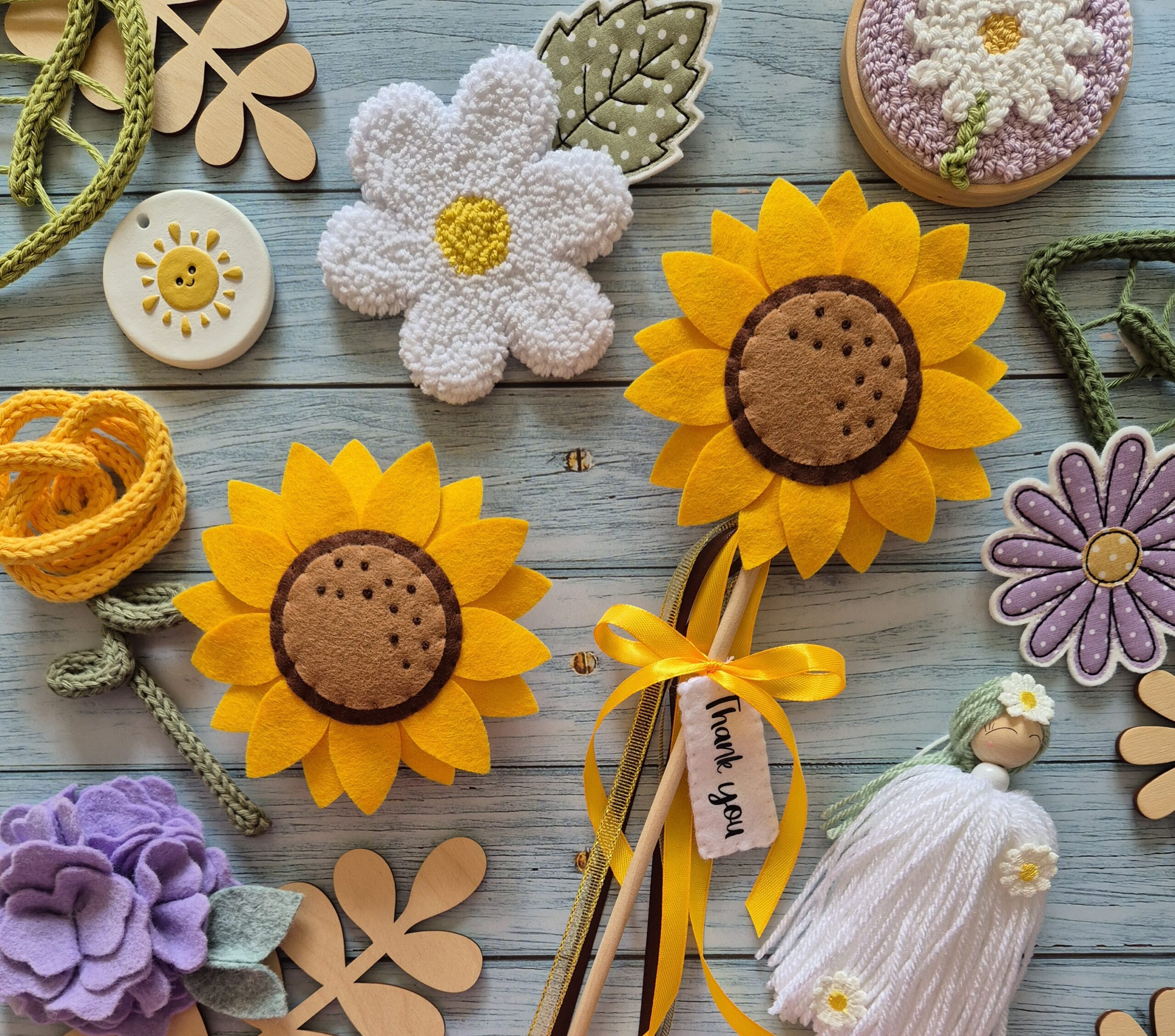 These adorable sunflower hanging decorations would add the perfect finishing touch to any bedroom. They are all lovingly designed and handstitched by myself.